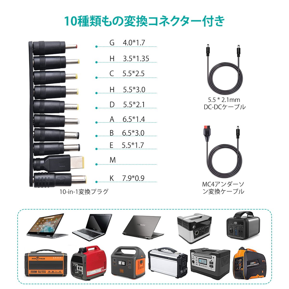 Our 120W Max Solar Panel Charger includes 10 DC connectors, which is compatible with most solar generators on the market. Choetech Mighty+ 300W Solar generator, 8mm DC Adapter for Jackery Explorer 240/160/500/1000 Power station/Goal Zero Yeti 150/400 and BALDR 330W Power Station, 3.5*1.35mm DC Adapter for Suaoki S270/ENKEEO S155/Paxcess 100W/Aiper 150W portable generator, 5.5*2.1mm DC Adapter for Rockpals 250W/350W/500W power station/PRYMAX 300W/FlashFish 200W portable generator. C4 connector cable for other compatible portable power stations.